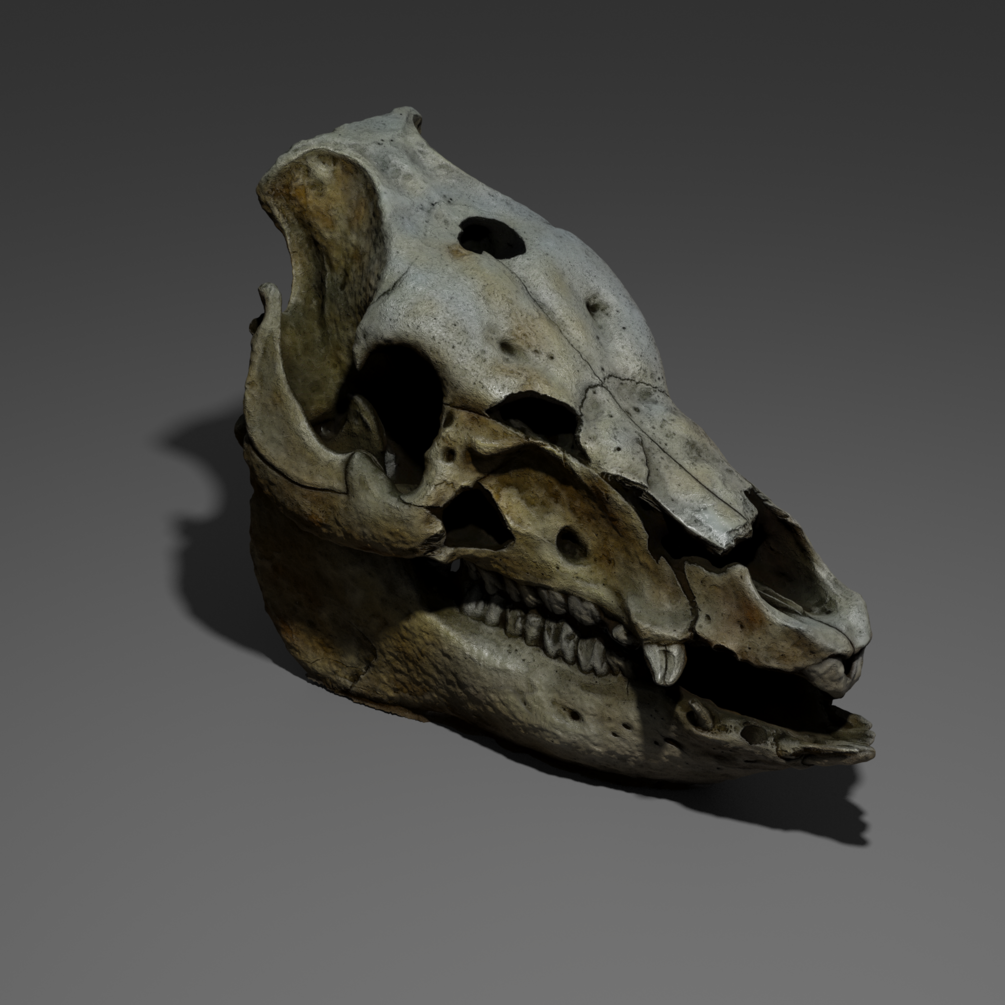 Photoscan done with a Sony camera of a wild pig skull found in the countryside. The model is super defined, highpoly FBX, it can easily be used in desolation or desert scenes.
