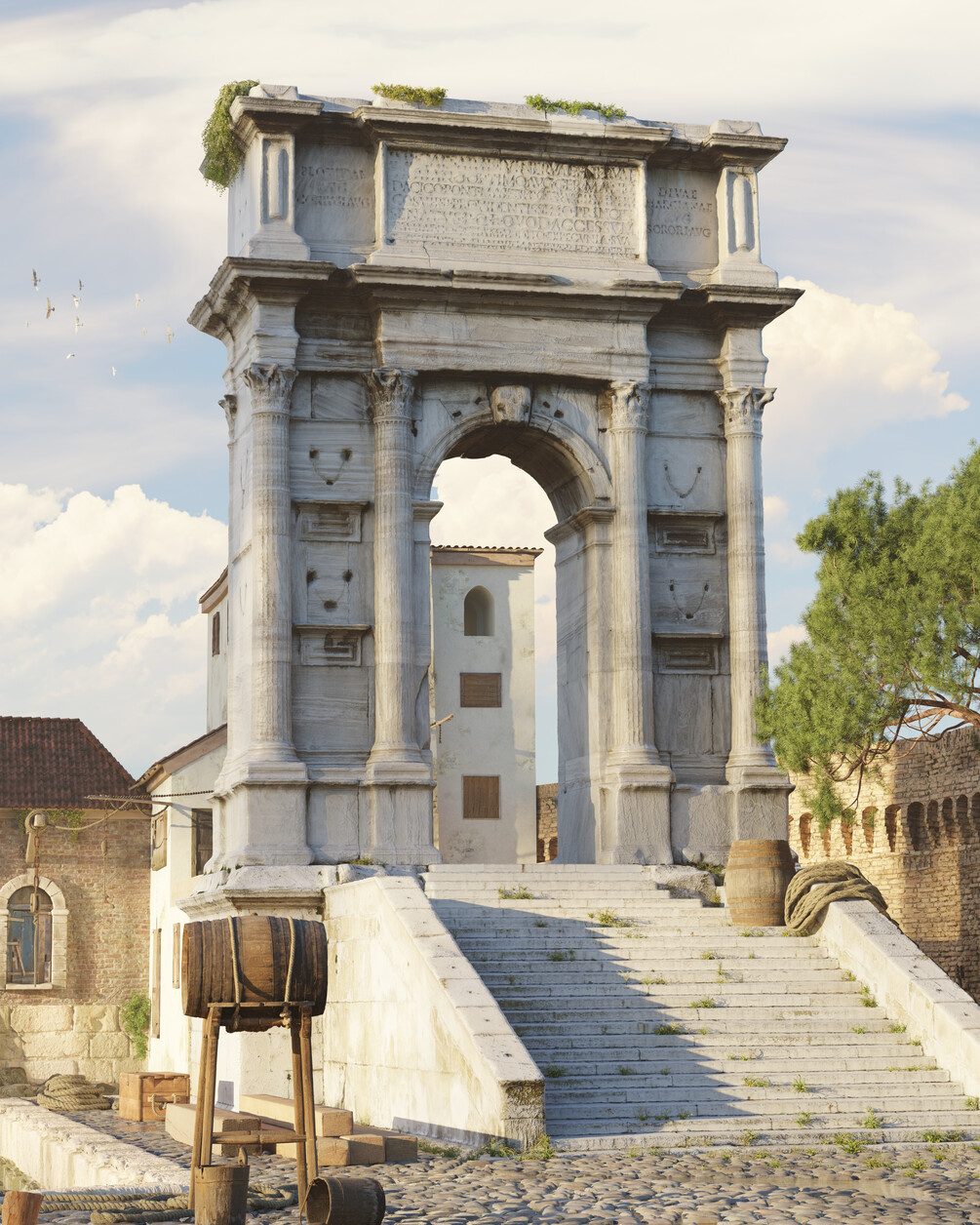 Photoscan done by drone of the Trajan's Arch in Ancona (Italy). The scan includes part of the surrounding terrain, which may or may not be eliminated depending on the purpose. The model is super defined, highpoly FBX, coming from a photogrammetric scan. It can be used in historical reconstruction scenes or simply as a basic asset for new creations.